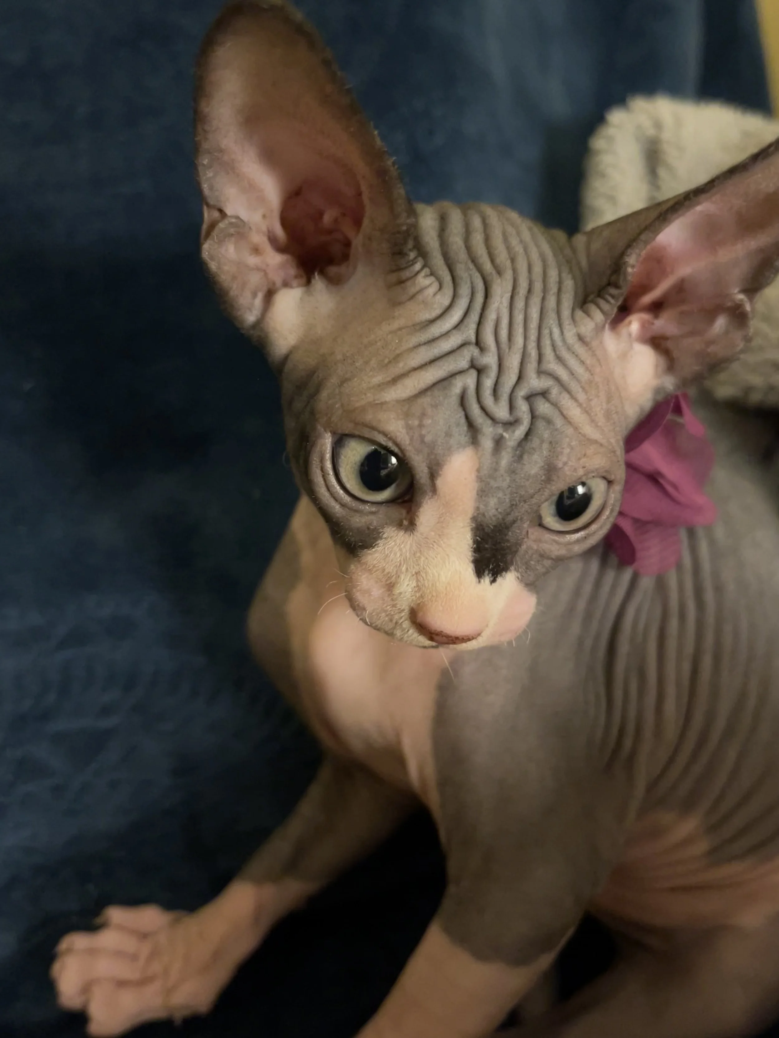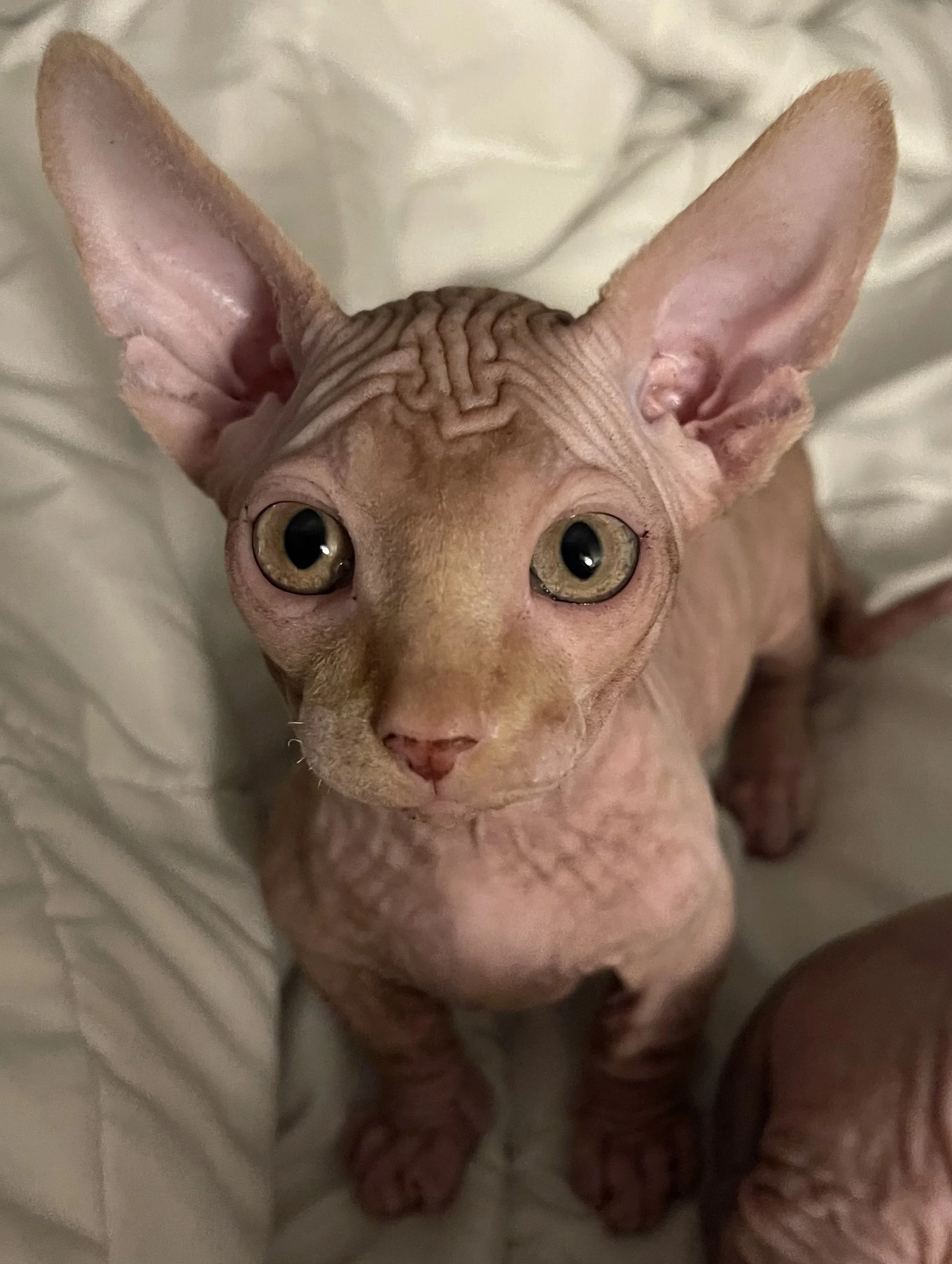 Sphynx cats might look like tiny, wrinkly aliens who crash-landed straight into our hearts—but don’t let the lack of fur fool you, these cats are bursting with personality and warmth (literally.) While these cats may lack a traditional fur coat, they more than make up for it with their warm, suede-like skin and striking features. Sphynx cats come in a wide array of colors and patterns—ranging from soft pinks and creamy whites to rich chocolates, sleek blacks, and even mottled tabby patterns. Their expressive eyes, which can be shades of blue, green, gold, or even odd-eyed (two different colors), add to their unforgettable look.